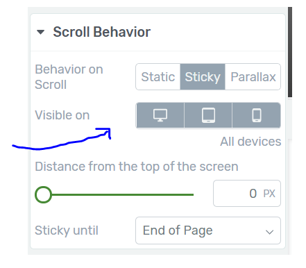No that’s not how it works. That means that the “Scroll behavior” won’t be visible on mobile, not the actual element that it’s applied to.