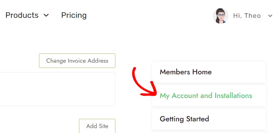 Let’s get started by logging into your Thrive Theme account. In your Thrive member dashboard, click on My Account and Installations from the right-side menu.