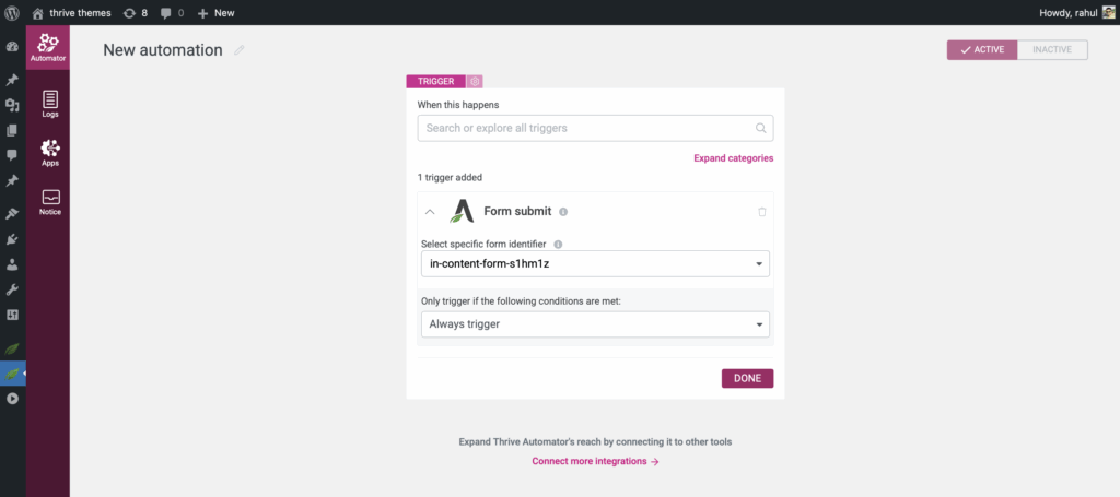 1. Use the Form submit trigger in Thrive Automator.