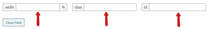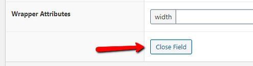 Last, but not least the “Wrapper Attributes” section can be used to define a width, a class, and an ID, in order to create a wrapping element for the field. This way, you will have more control over the layout of the field: