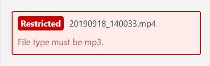 If this happens, you can either look for another file that has an allowed type for this “File” custom field, or you can go back to the “Field Group” and change the “Allowed file types” setting for the respective “File” custom field.