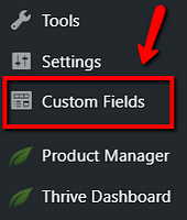 Then, go to your WordPress admin dashboard and click on the “Custom Fields” item from the left side menu: