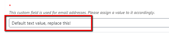 Nevertheless, in order to be able to properly use the custom field, you will have to delete this default value and replace it with the actual value you want to assign to the custom field, in the WordPress editor.
