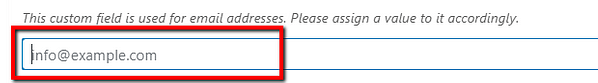 The “Placeholder Text” option allows you to add a text that will stay as an example text in the custom field, it will be a placeholder, until you assign the actual content, the value for the custom field.