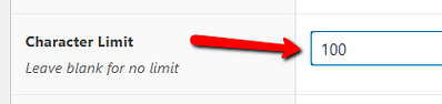 This setting allows you to limit the number of characters for the custom field. If this is something that you want to set, then enter the limit number in the field from the “Character Limit” section of the settings: