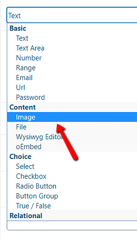 - “Image” element → “Image” field type