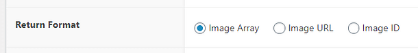 With this setting, you can choose what format the returned data from this custom field should be. You can choose between “Image Array”, “Image URL” and “Image ID”. Simply click on the one you want to use from the “Return Format” section:
