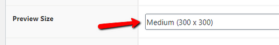 By default, the “Medium (300 x 300)” size is set here. If you want to change this, click on the field with this size from the “Preview Size” section: