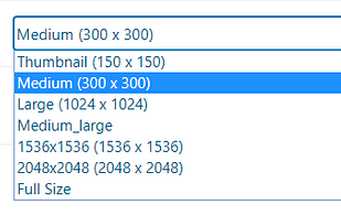 This will open a drop-down with various image sizes. Click on the one you want to use and it will be selected: