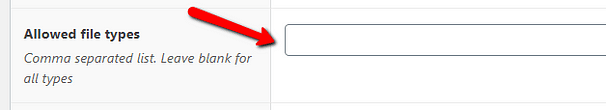 Note: If you do not want to specify file types here, then leave the field blank. This will mean that all file types are allowed.