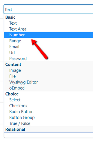 You can do this in the “Field Type” section. By default, the “Text” field type is selected here.
