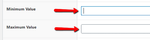 These two settings let you define a minimum and a maximum numeric value for the field. The default “Minimum Value” is 0 and the default “Maximum Value” is 100.