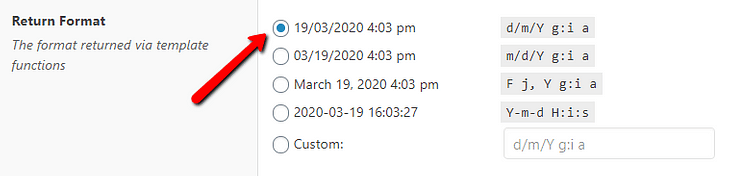 The “Return Format” refers to the format that will be returned when the value of the “Date Time Picker” will be loaded (in our case, when you will use the custom field with the Thrive Architect elements).
