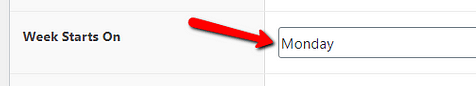 By default, this is set to Monday. If you want to change this, first click on the field with “Monday” in it, from this section:
