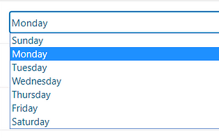 This will open a drop-down with the days of the week. Click on the one you want to use and it will be selected: