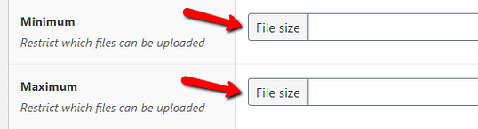 The “Minimum” and “Maximum” settings allow you to limit the size of the files that will be assigned as values for your “File” field.