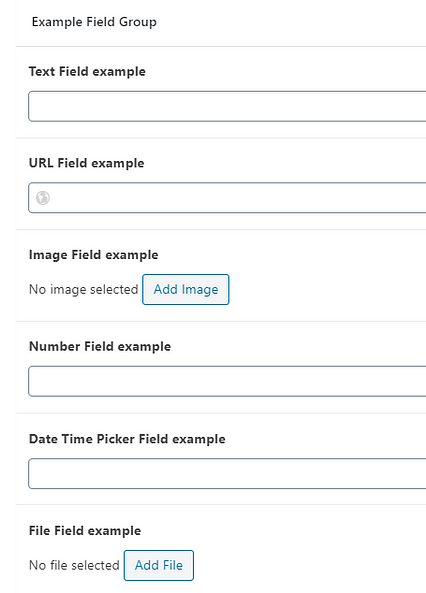 → Add these types of custom fields to the “Field Group” you have created, in your “Advanced Custom Fields” (ACF) dashboard (if you require detailed information on how to create the “Field Group”, take a look at this step-by-step guide here).