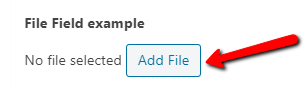 Look for the “File” custom field you have previously set up. When you have found it, click on the “Add File” button that appears below it: