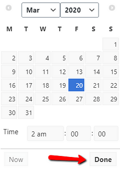 Choose the date and the time from the pop-up and when you are done, click on the “Done” button from it: