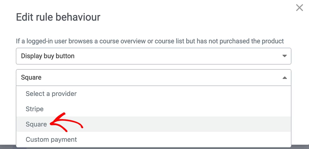 Once you connect Thrive Apprentice with Square you need to ensure the buy button you display is that of Square.