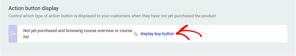 On the product access restriction rules page, scroll down to the Action button display section and click on display buy button link.