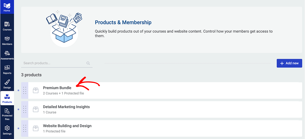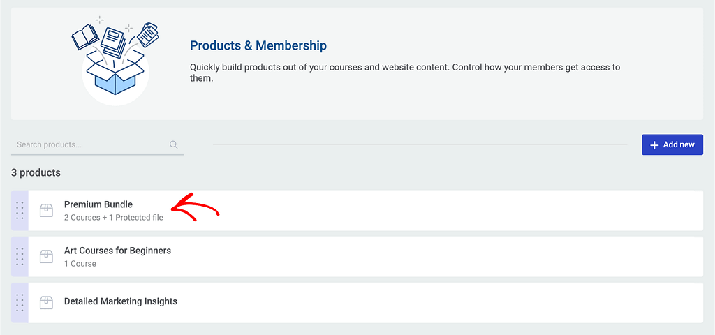 On the Products page, click on the product that contains the course you want to sell using Square.