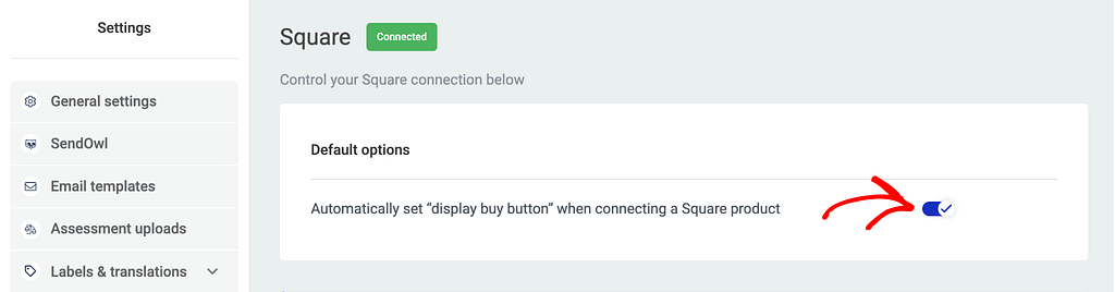 On the Square connections page, ensure the display buy button for Square is enabled.