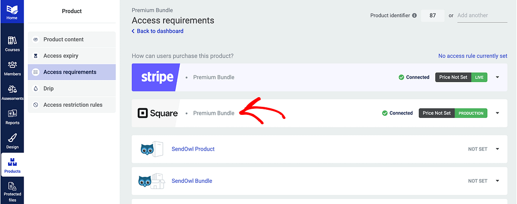 Before you set things up in the Thrive Apprentice product access restrictions, ensure the option is enabled under Square.