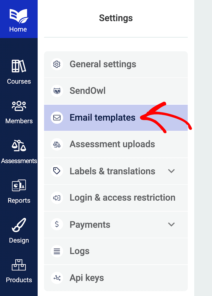 On the Settings page, click on Email templates in the left column.