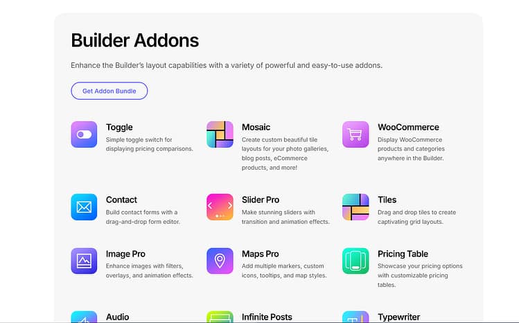 If you want to showcase products in specific layouts, display interactive maps, or create pricing tables, each feature requires its own addon. I think these addons do their job well, but remember that each one adds another piece to manage in your website's backend.