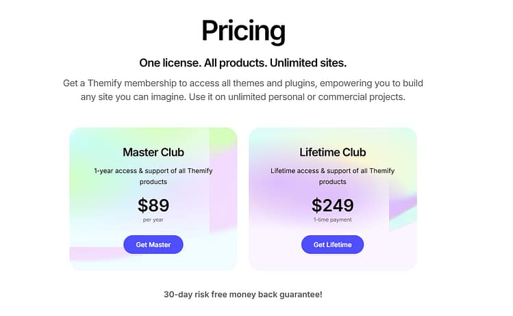 All plans include a 30-day money-back guarantee, which gives you enough time to test whether Themify fits your needs.