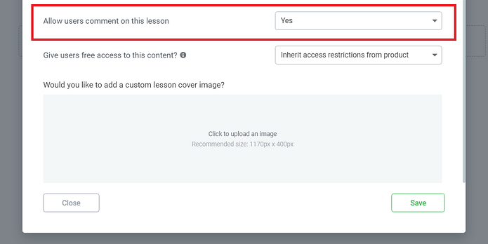 To enable this feature in Thrive Apprentice, just head to an individual lesson’s settings. Here, you can easily activate the commenting option: