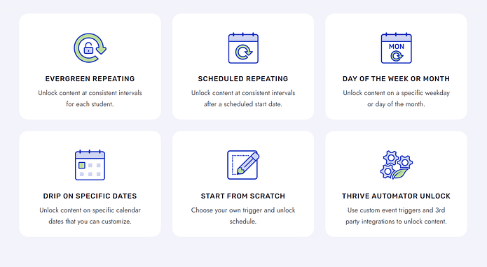 One of Thrive Apprentice’s star features is its drip functionality. This tool allows you to control what content your learners can access and when.