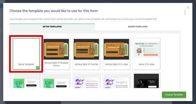 Choose the “Blank Template” opt-in form lightbox when prompted:
