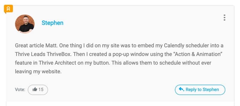Fitness & Nutrition Coach Stephen Box left us an awesome comment about how he automates his new client scheduling using Thrive Leads.