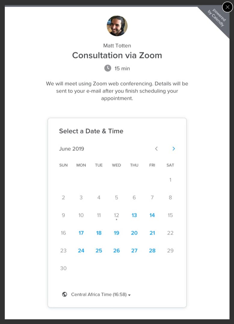 For this post, I’ll showcase how to do this using Calendly (just like Stephen uses on his own coaching site):