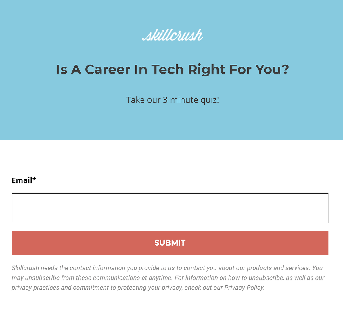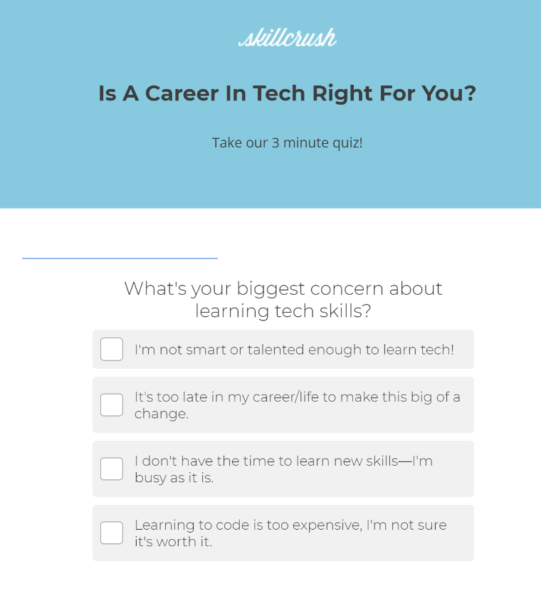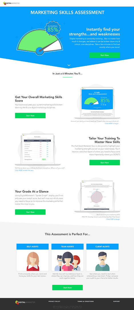 Their lead generation quiz is a Marketing Skills Assessment that visitors can use to gauge their current marketing skill level.