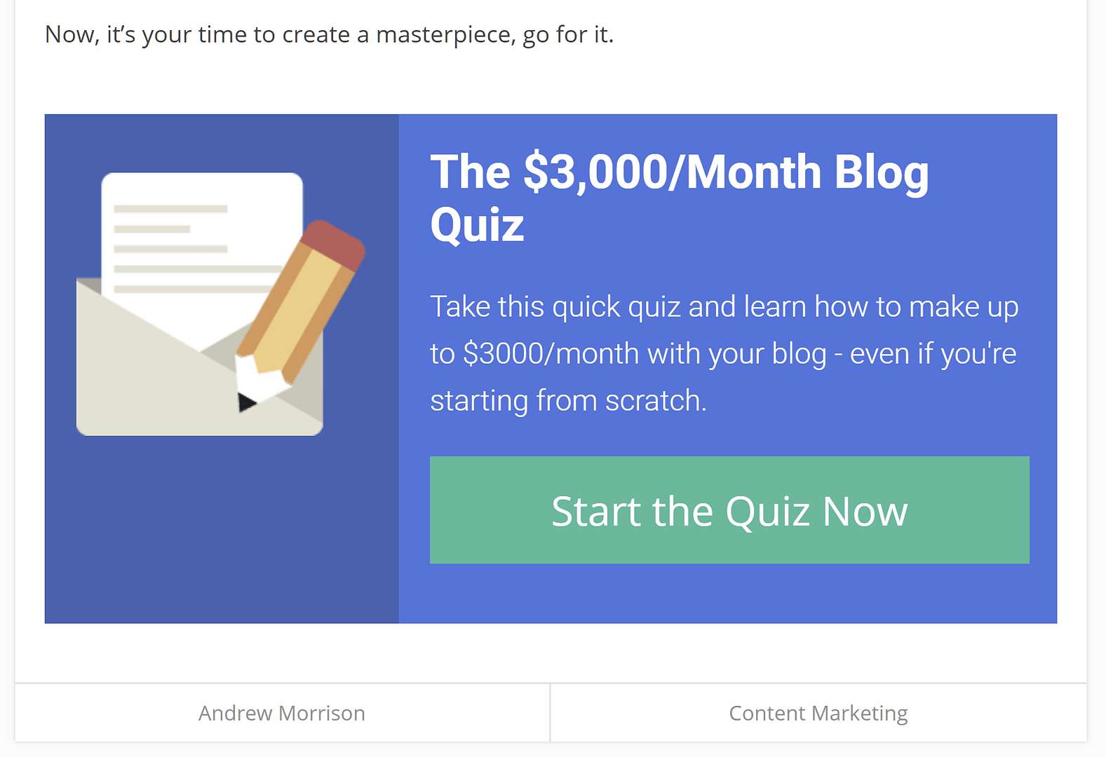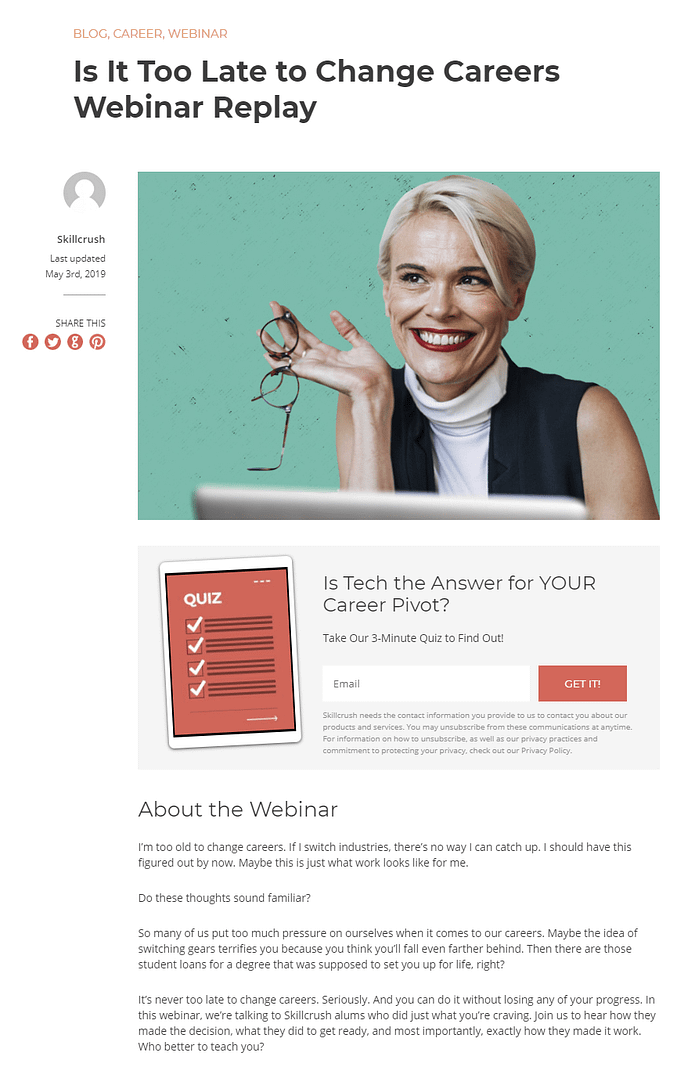 They also use post footers, sidebar CTA’s and a lightbox to drive visitors to the quiz.