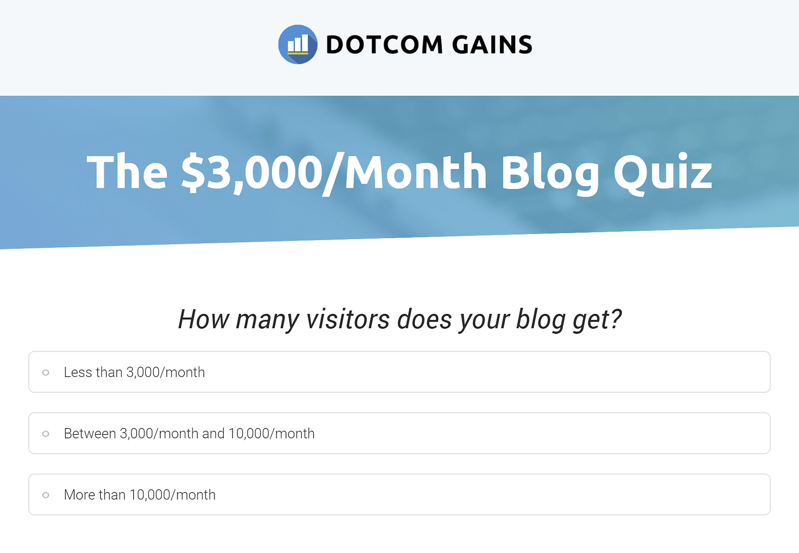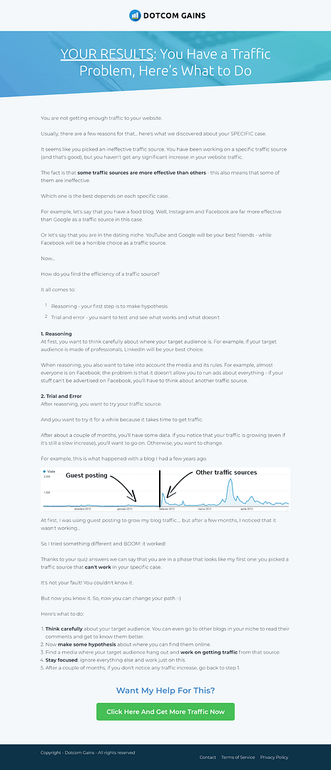 Dotcom Gain's quiz funnel