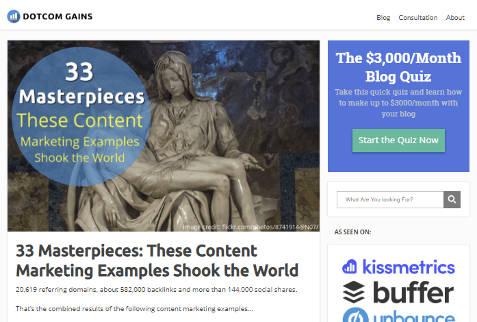 Dotcom Gains is a blog about making money online. They mainly focus on blogs and content marketing.