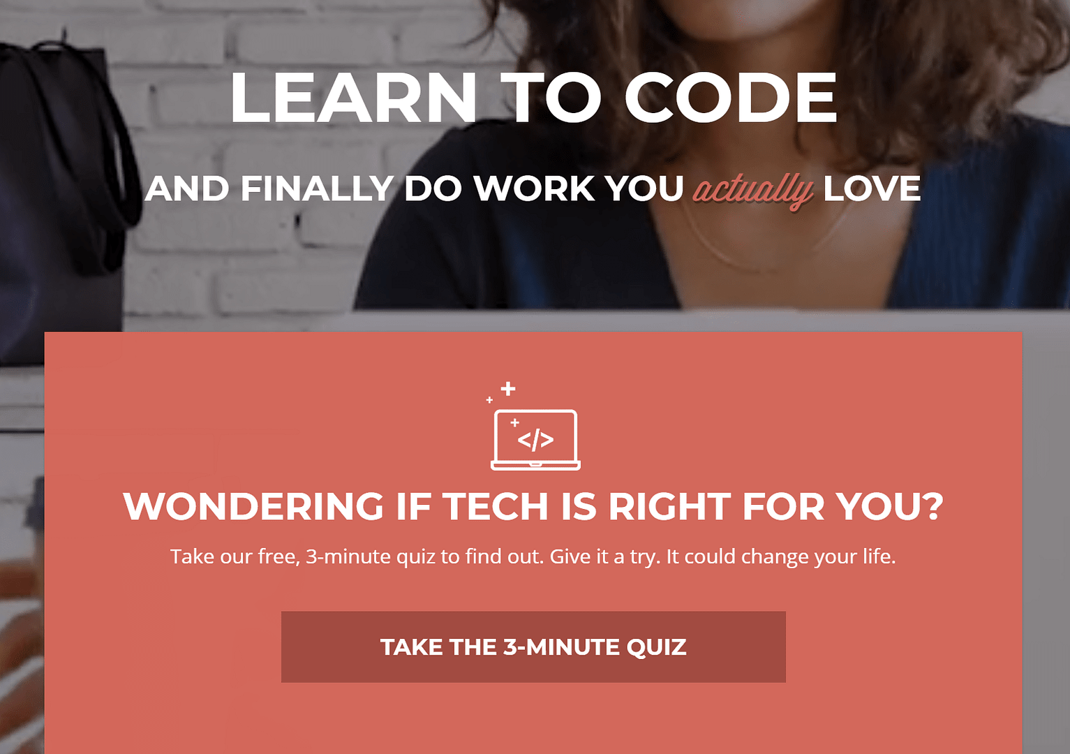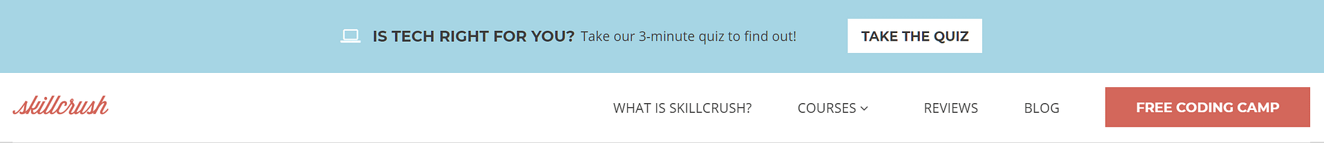 On the above the fold section on their homepage, Dotcom Gains has a CTA for visitors to take their quiz.
