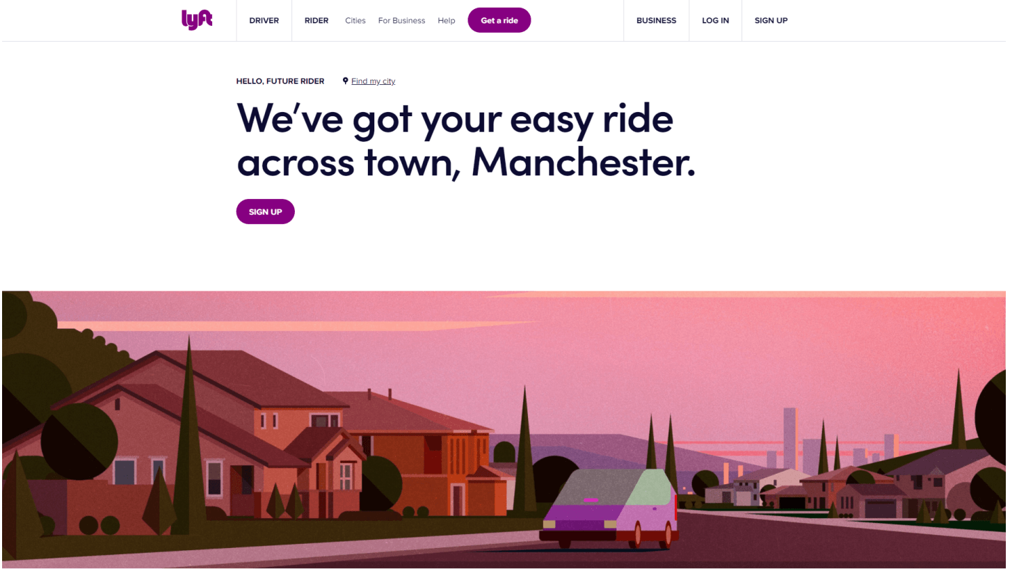 Lyft's website features lots of template-drive, location-focused landing pages.