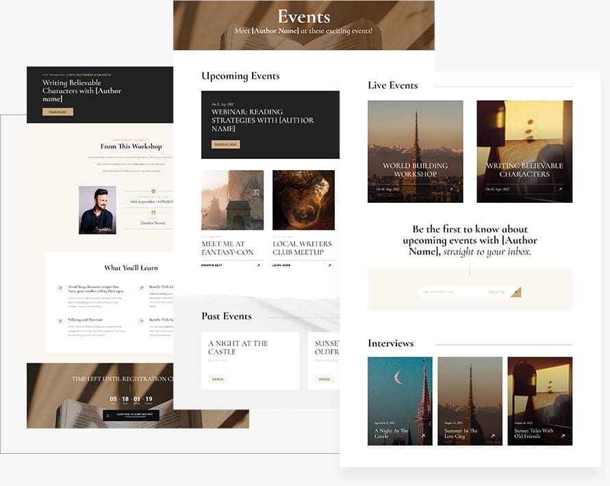 If you're the kind of writer who enjoys connecting with your readers and fellow authors, you'll LOVE the stylish Events page template in Bookwise.