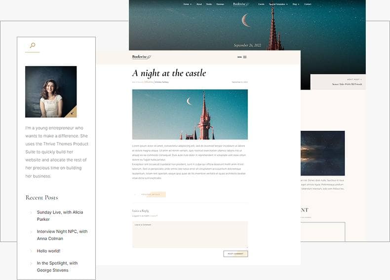 Bookwise uses Thrive Theme Builder to let you visually customize every single element of your website to match your brand and personality. Customizing your author website is fast, intuitive and even fun!