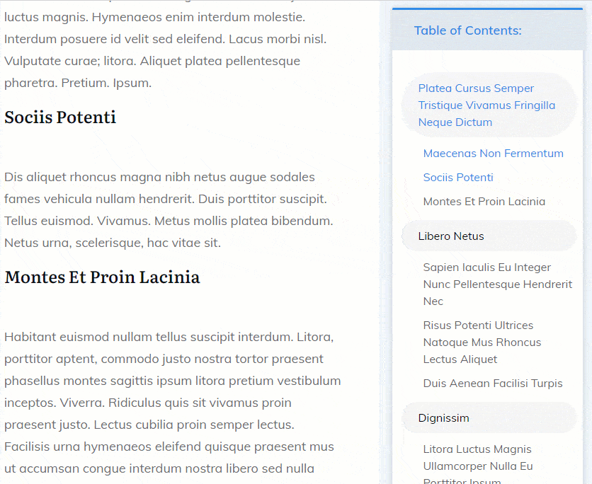 A Table of Content element is designed to make long-form content more readable, not add unnecessary scrolling. But the longer and more structured your content, the longer your Table of Contents grows.