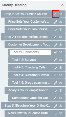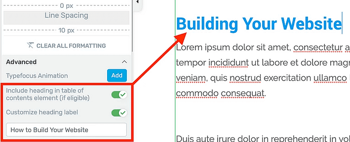 If you’ve added the elements with Thrive Architect, you can hide them from the TOC using the method shown in the ‘Modifying Sections’ chapter above.