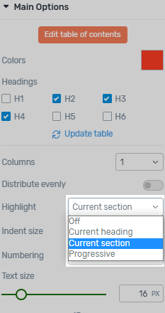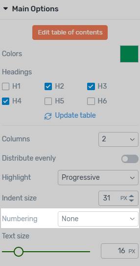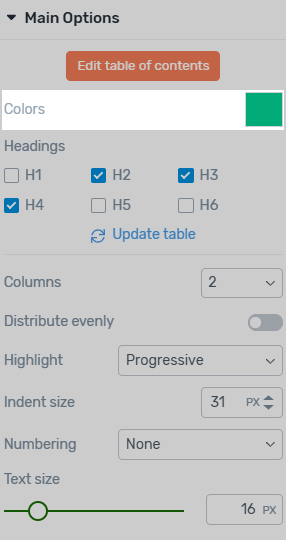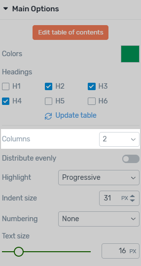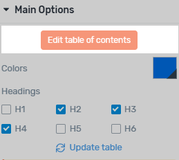Depending on the needs of your content, you can choose which heading levels to include in your Table of Contents.