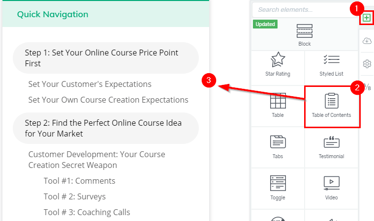 This is where a professional, powerful, and customizable Table of Contents element can make a huge difference.