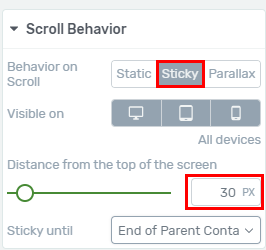 No that’s not how it works. That means that the “Scroll behavior” won’t be visible on mobile, not the actual element that it’s applied to.
