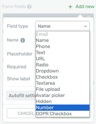 3. New 'Number' Form Field